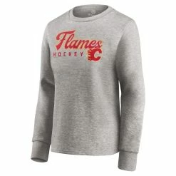 - A chill in the air won’t hamper your Calgary Flames spirit when you’ve got this Fan Favorite Script pullover sweatshirt from Fanatics Branded. It features your team’s graphic in a tasteful font and comforting midweight design. Showcase your Calgary Flames pride and keep morale on high even when temperatures drop when you reach for this bold extra layer.