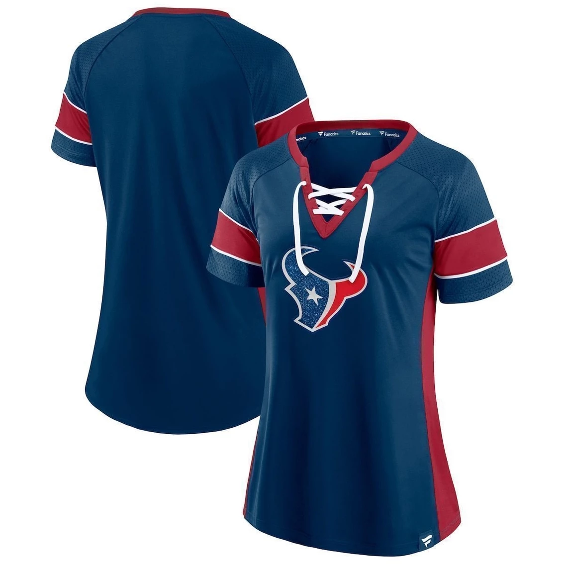 Brand new β Women's Fanatics Branded Navy/Red Houston Texans Team Draft Me Lace-Up Raglan T-Shirt π