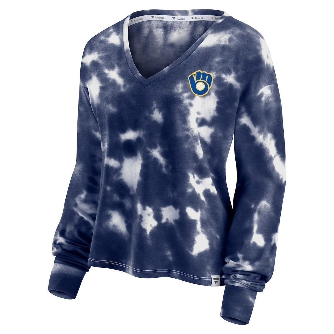 Best reviews of π Women's Fanatics Branded White/Navy Milwaukee Brewers Tie-Dye V-Neck Pullover Cropped Tee β