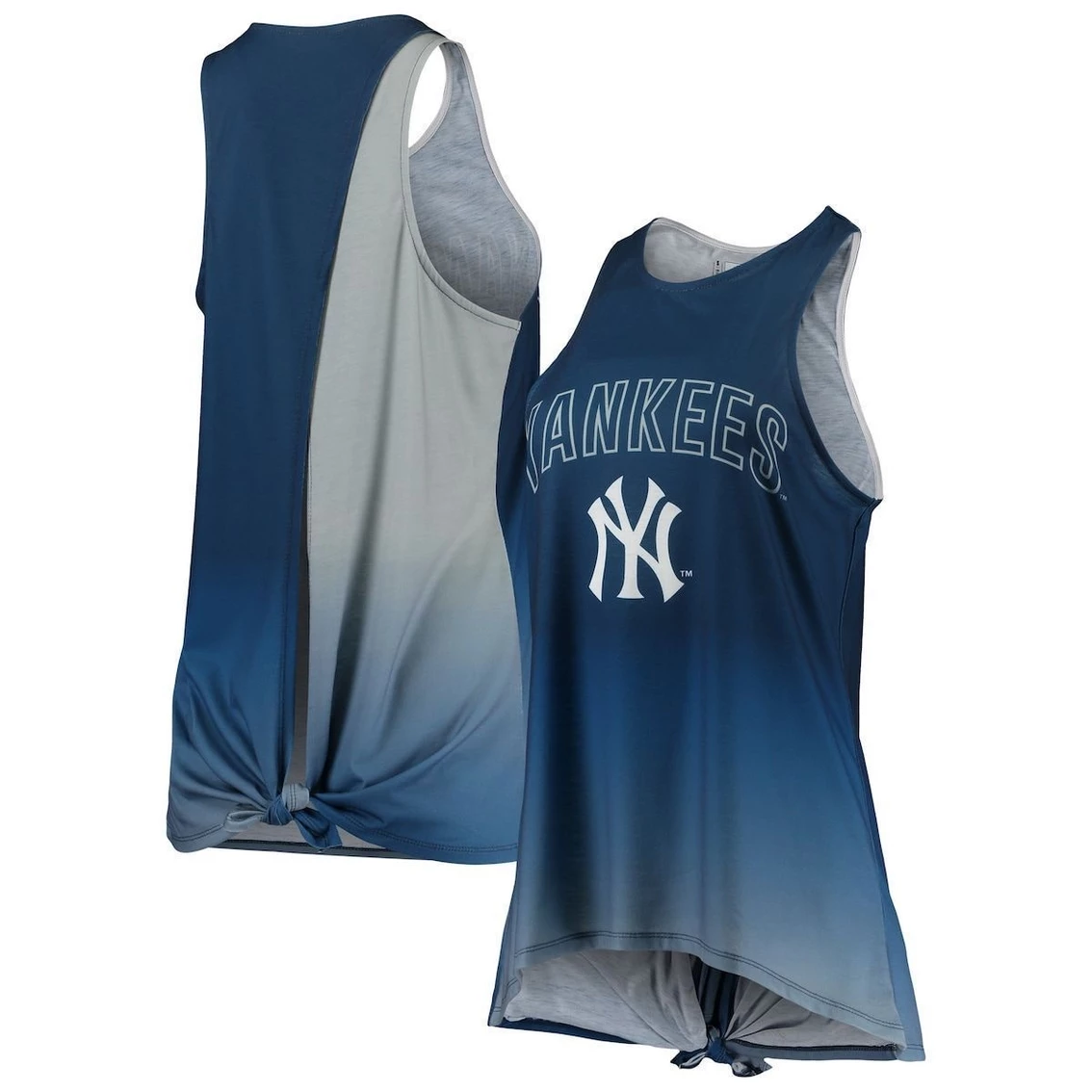 - Show that your love for the New York Yankees comes in all colors and shades with this Gradient Tie-Back racerback tank top from FOCO. Along with bold New York Yankees graphics, it features a crossover open back that helps you beat the heat in style. In addition, the droptail hem adds to its fit and feel, ensuring it rests comfortably at the waist.