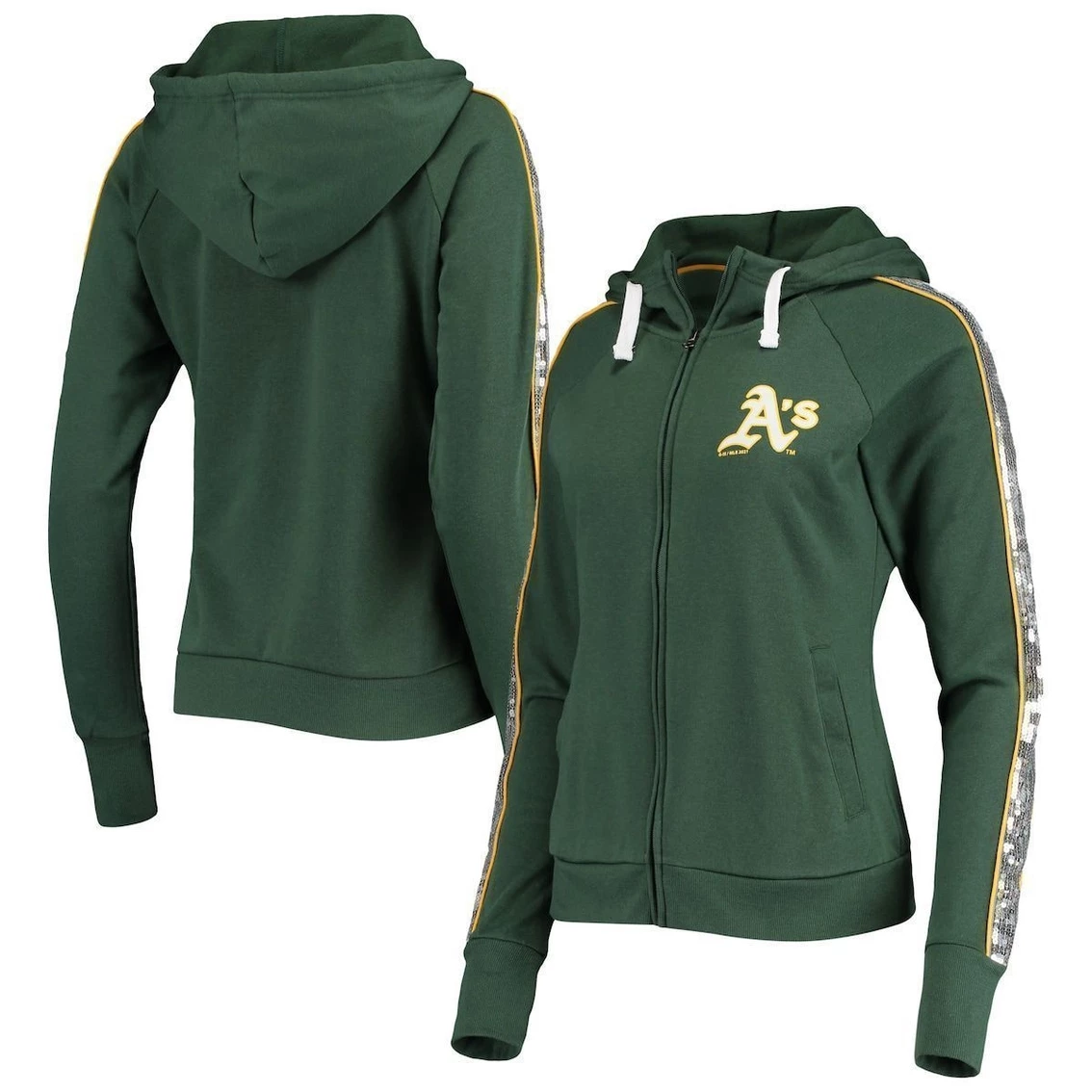 - Glitz up your outerwear with this Oakland Athletics Game Changer full-zip hoodie from G-III 4Her by Carl Banks. It features the Oakland Athletics logo accentuated by the sparkly sequins and contrast-color piping on the raglan sleeves, which provide more room for better movement. Plus, microfleece lining adds another layer of softness, and thumbholes keep the sleeves in place.
