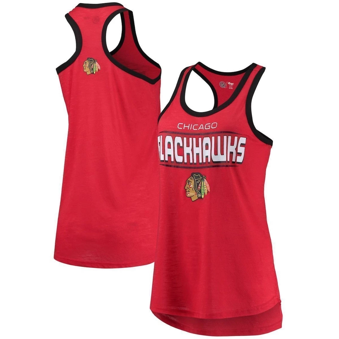- Put this trendy Showdown tank top from G-III Sports by Carl Banks in your rotation of Chicago Blackhawks gear. Featuring a racerback cut, this top features a vibrant Chicago Blackhawks design with contrast-color trimming for a touch of charm. Slub fabric gives you a more translucent look.