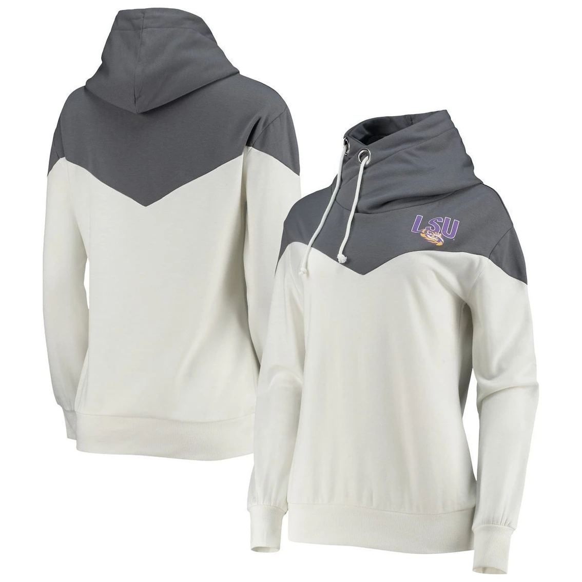 SKU: DSCO1141964595 Categories: Hoodies & Sweatshirts, Tops, Women's Clothing Tags: Clothing & Accessories, Gameday Couture, Hoodies & Sweatshirts, Women's Gameday Couture White/Gray LSU Tigers Old School Arrow Blocked Cowl Neck Tri-Blend Pullover Hoodie
