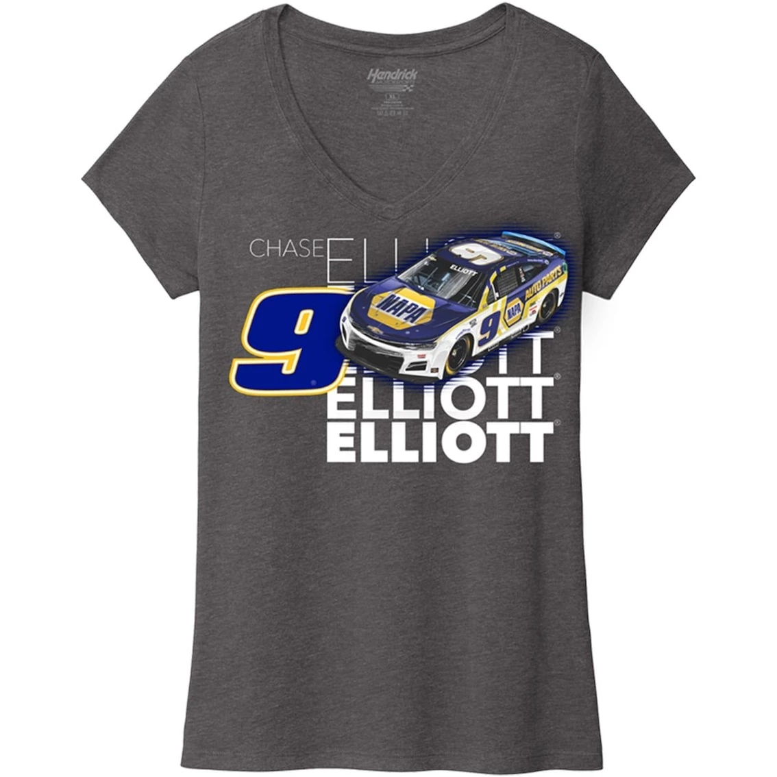 - Show off your die-hard Chase Elliott fandom with this V-Neck T-Shirt by Hendrick Motorsports Team Collection. It lets everyone know how excited you are for the next big NASCAR race. Featuring bold graphics, cheer on Chase Elliott every time you throw on this sweet gear.