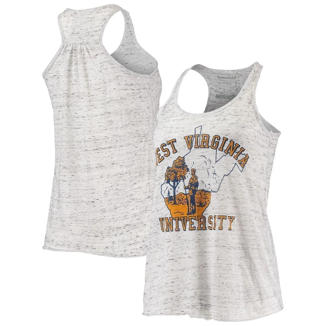 - Use a throwback lens to show your school pride with this West Virginia Mountaineers vintage racerback tank top from Homefield. The slub fabric and historic logo combine for a great look on top of incredibly soft material. The racerback design also adds stability without sacrificing mobility to ensure a premium fit. This tank is the perfect way to support the West Virginia Mountaineers with both style and comfort in mind.