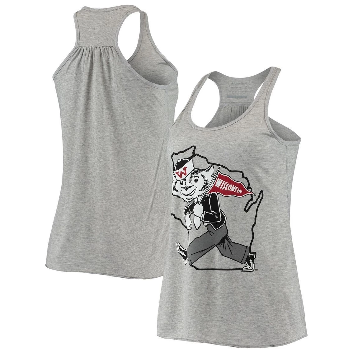 Flash Sale β Women's Homefield Ash Wisconsin Badgers Vintage Racerback Tank Top π―