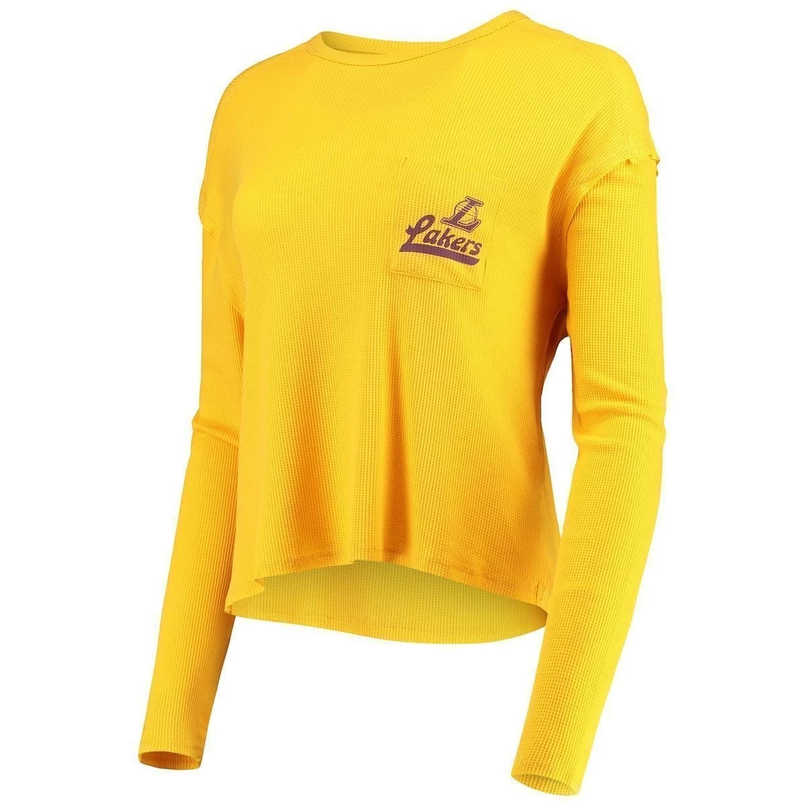 Budget π₯° Women's Junk Food Gold Los Angeles Lakers Pocket Thermal Tri-Blend Long Sleeve T-Shirt π