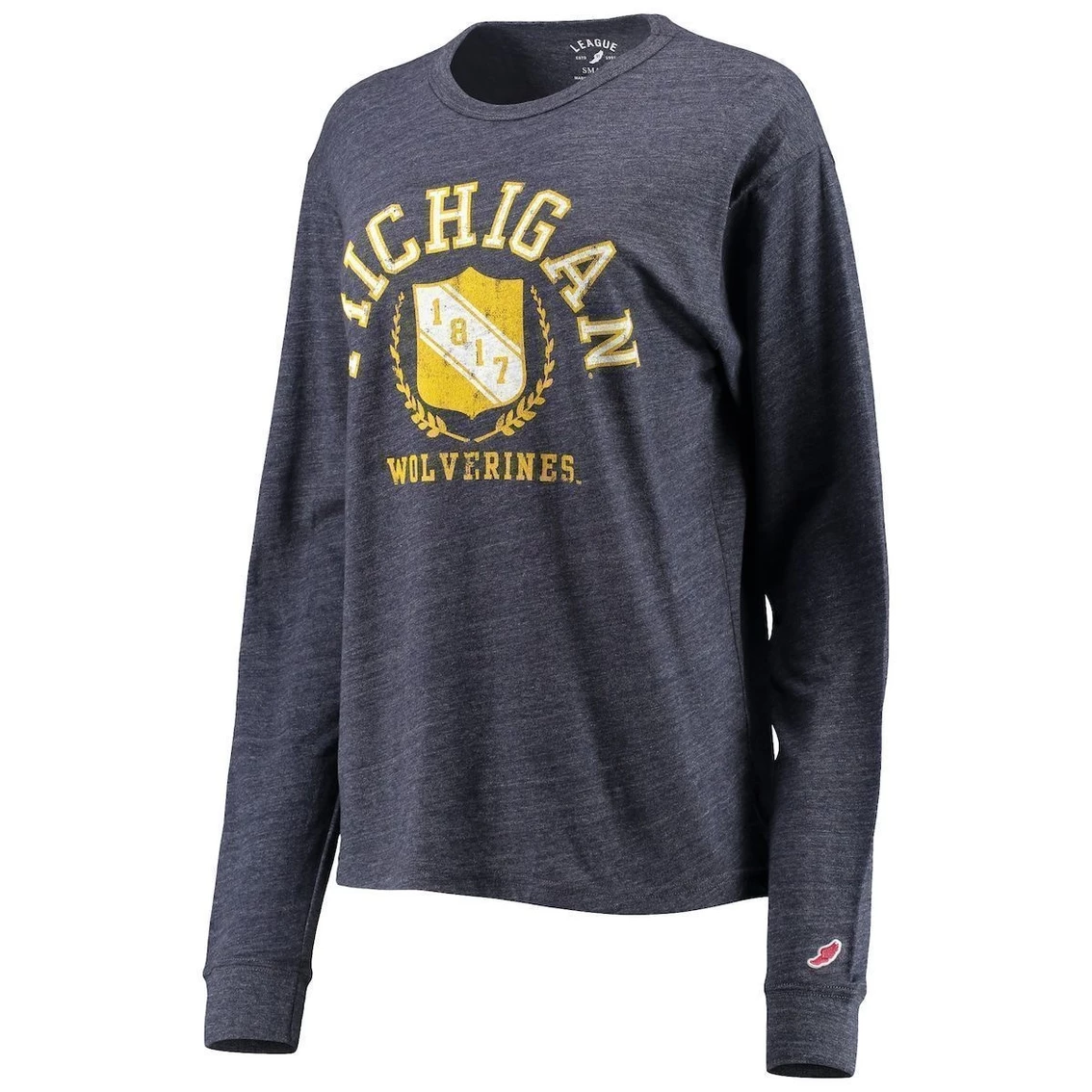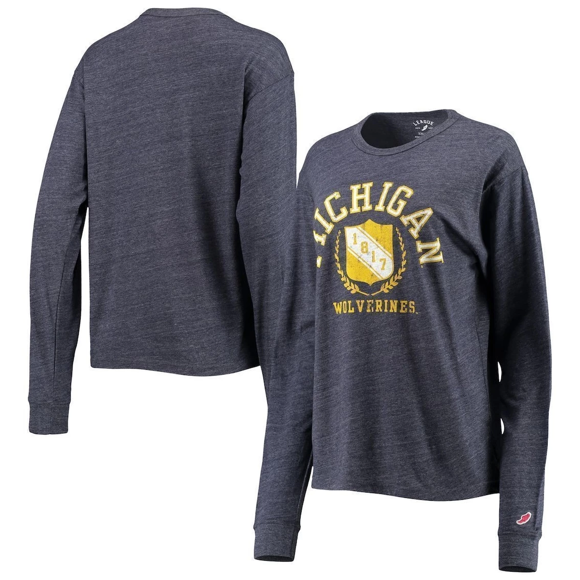 Best reviews of π Women's League Collegiate Wear Heathered Navy Michigan Wolverines Seal Victory Falls Oversized Tri-Blend Long Sleeve T-Shirt β