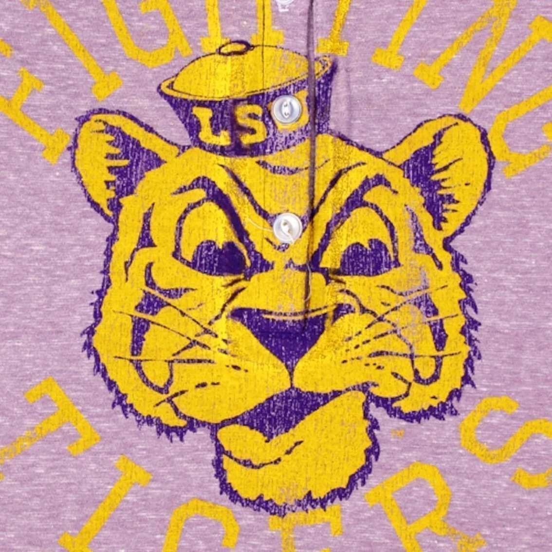 - Cheer on your LSU Tigers in this Relaxed Henley tank top! You love watching your team play, and you find any excuse to show your Louisiana State University spirit. This cool tank from Original Retro Brand features distressed printed LSU Tigers graphics, a placket with four buttons on the front and a deep scoop neck so you can look great while showing your team pride on game day and keeping comfy in its tri-blend construct.