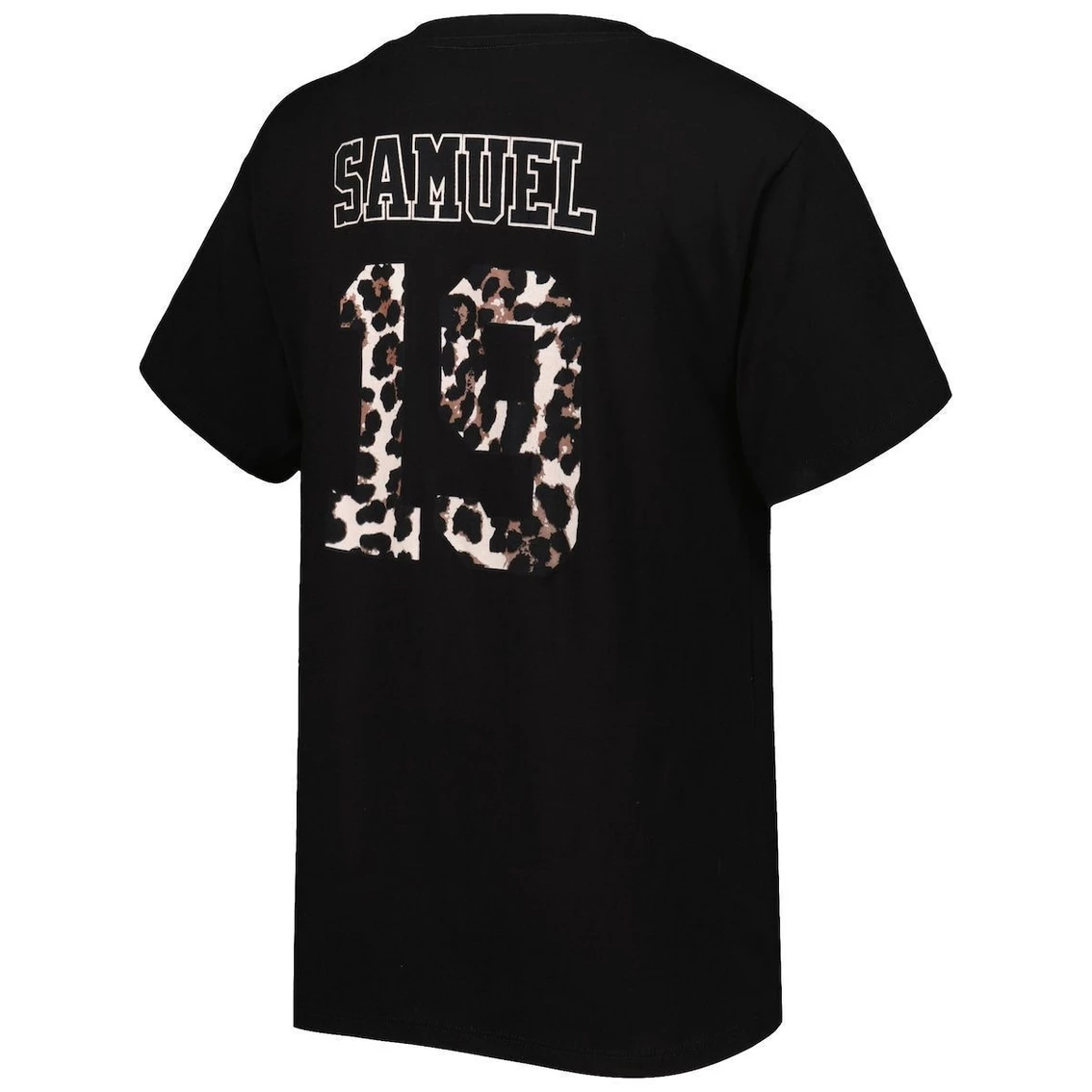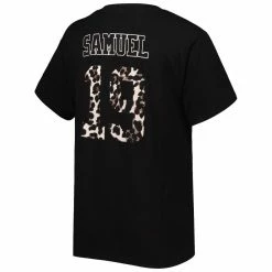 - This Deebo Samuel Player Name and Number T-shirt from Majestic Threads puts a unique spin on your San Francisco 49ers gear. The slightly dropped shoulders and crew neck design supply comfort with each wear. Best of all, the Deebo Samuel graphics feature eye-catching leopard details so that your fandom stands out from the rest.
