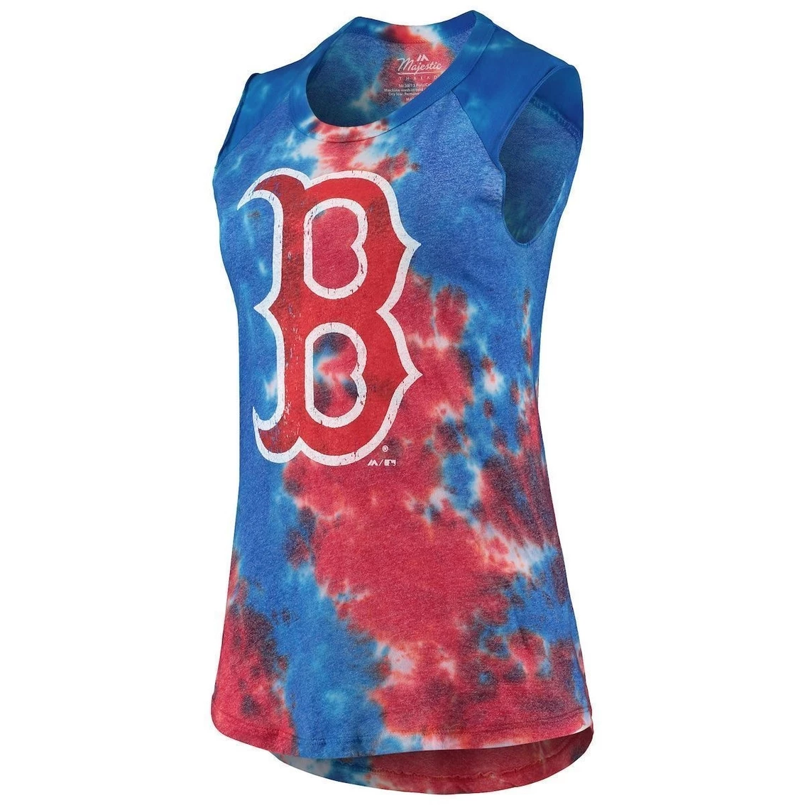Showcase your Boston Red Sox fandom with some summer flair each time you reach for this tri-blend tank top from Majestic Threads. It features bold Boston Red Sox graphics and an attention-grabbing tie-dyed look that’s second to none. Better still, you’ll love the fit and feel of this muscle cut tank when things heat up this season. Screen print graphicsTagless CollarMachine wash, tumble dry lowBrand: Majestic ThreadsSleevelessMaterial: 50% Polyester/38% Cotton/12% RayonSublimated designDistressed details for a vintage lookTie-dye design may varyRounded hemCrew neckMade in the USAOfficially licensedShoulder seams with raglan design