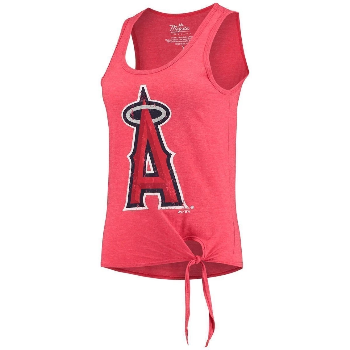 - You’re the biggest Los Angeles Angels fan, and you want to show your support even on hot days. Now you can look and feel cool with this Majestic Threads scoop neck racerback side tie tri-blend tank top. Whether you’re at the ballpark or in the backyard, the stylish side tie and distressed graphics will help you stand out the next time you’re watching the Los Angeles Angels win.