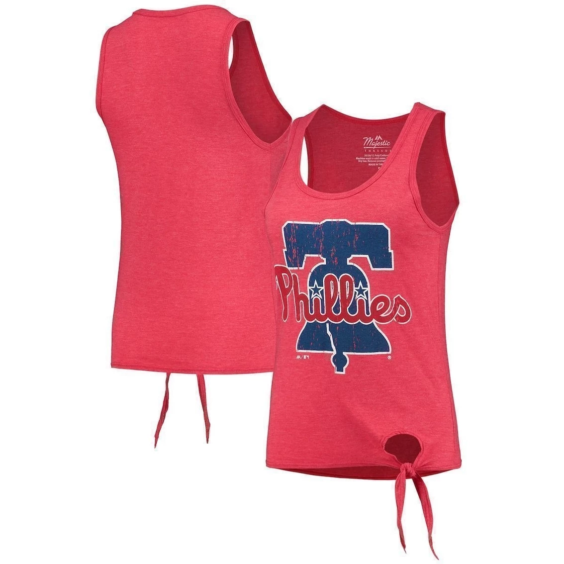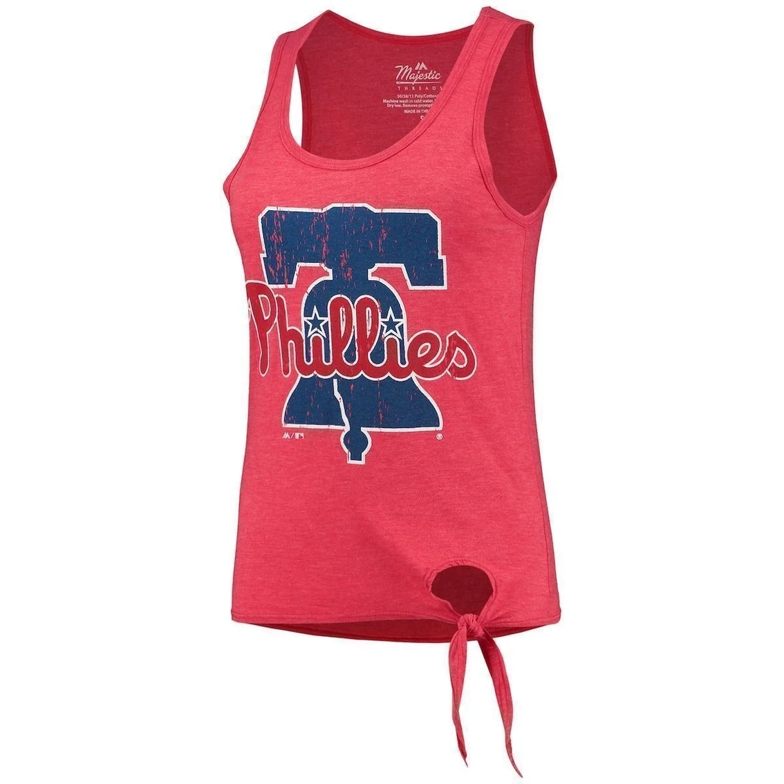 - You’re the biggest Philadelphia Phillies fan, and you want to show your support even on hot days. Now you can look and feel cool with this Majestic Threads scoop neck racerback side tie tri-blend tank top. Whether you’re at the ballpark or in the backyard, the stylish side tie and distressed graphics will help you stand out the next time you’re watching the Philadelphia Phillies win.