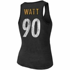 - T.J. Watt is your favorite player, and for good reason. Show him your support by grabbing this Pittsburgh Steelers Name & Number tri-blend tank top from Majestic Threads. It features bold Pittsburgh Steelers and T.J. Watt graphics, so no one will be able to question where your allegiance lies every time you rock this sweet gear.