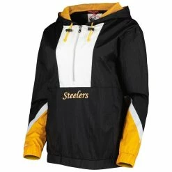 Flash Sale β Women's Mitchell & Ness Black Pittsburgh Steelers Half-Zip Windbreaker Hoodie βοΈ