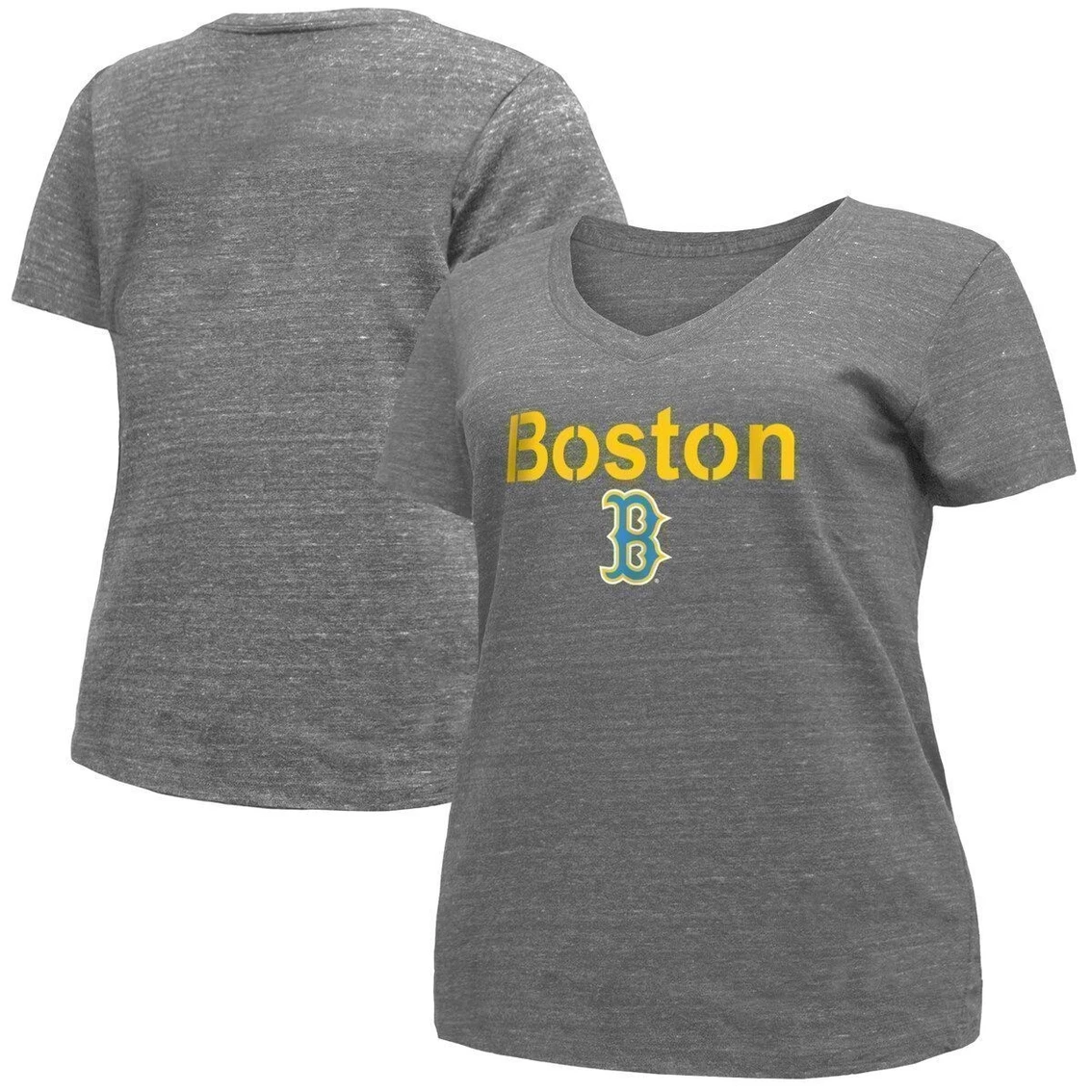 Budget π₯ Women's New Era Heathered Gray Boston Red Sox City Connect Plus Size V-Neck T-Shirt π₯°