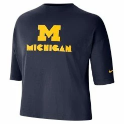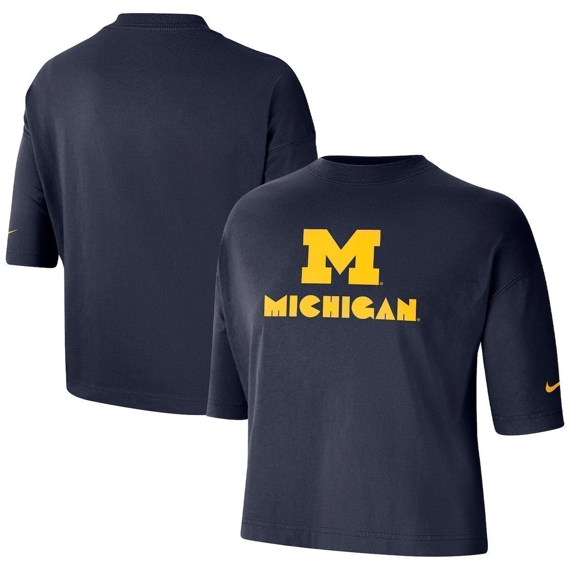- Handle warm weather game days in style with this Michigan Wolverines Crop T-shirt from Nike. This tee features Dri-FIT technology that keeps you cool and comfortable as you cheer your team to victory. This crop top is oversized for a cozy, loose fit, making it a perfect casual option for the big game.