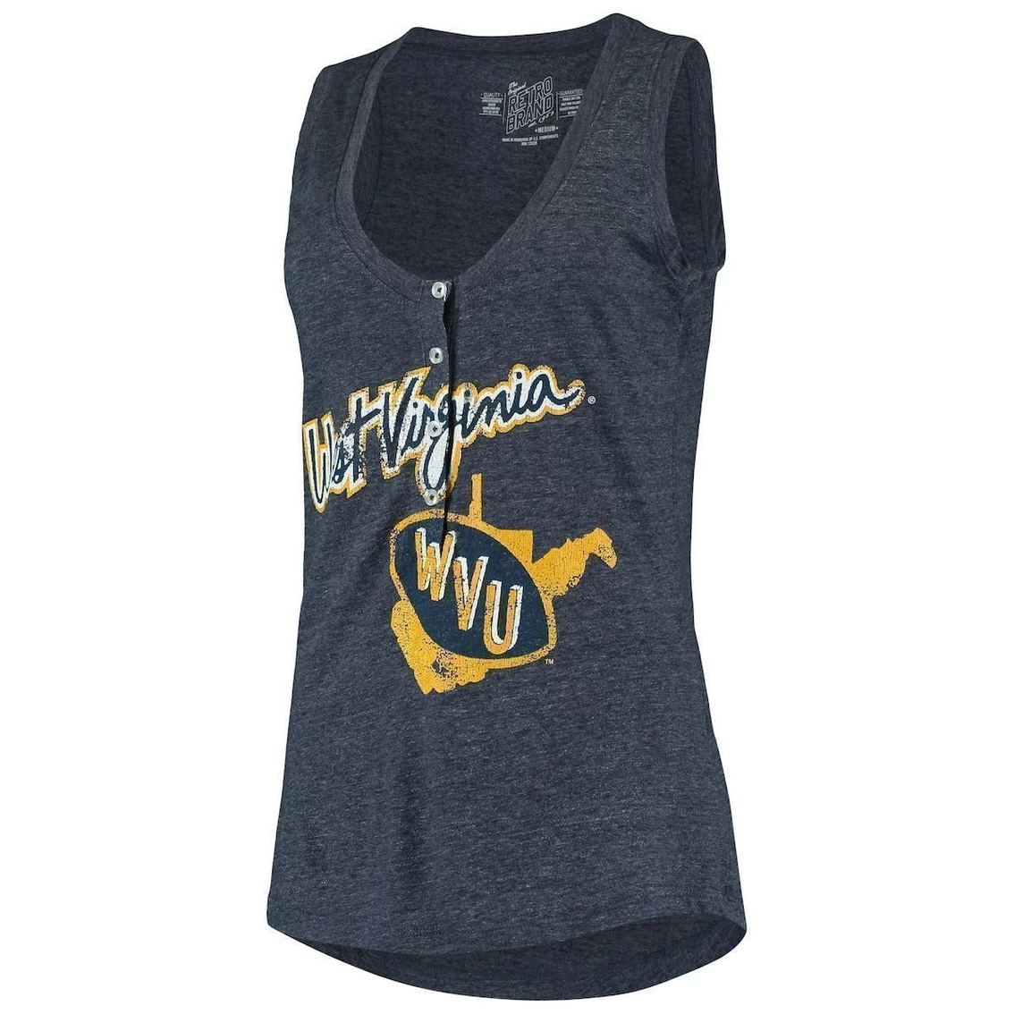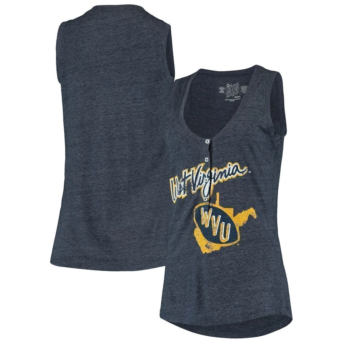 - Exhibit your passion for the West Virginia Mountaineers by wearing this Relaxed Henley tank top from Original Retro Brand. It features really soft tri-blend material, a lower V-neck design with four buttons, and vintage-looking West Virginia Mountaineers graphics. It’s a comfortable and stylish way to show your collegiate support on hot days.