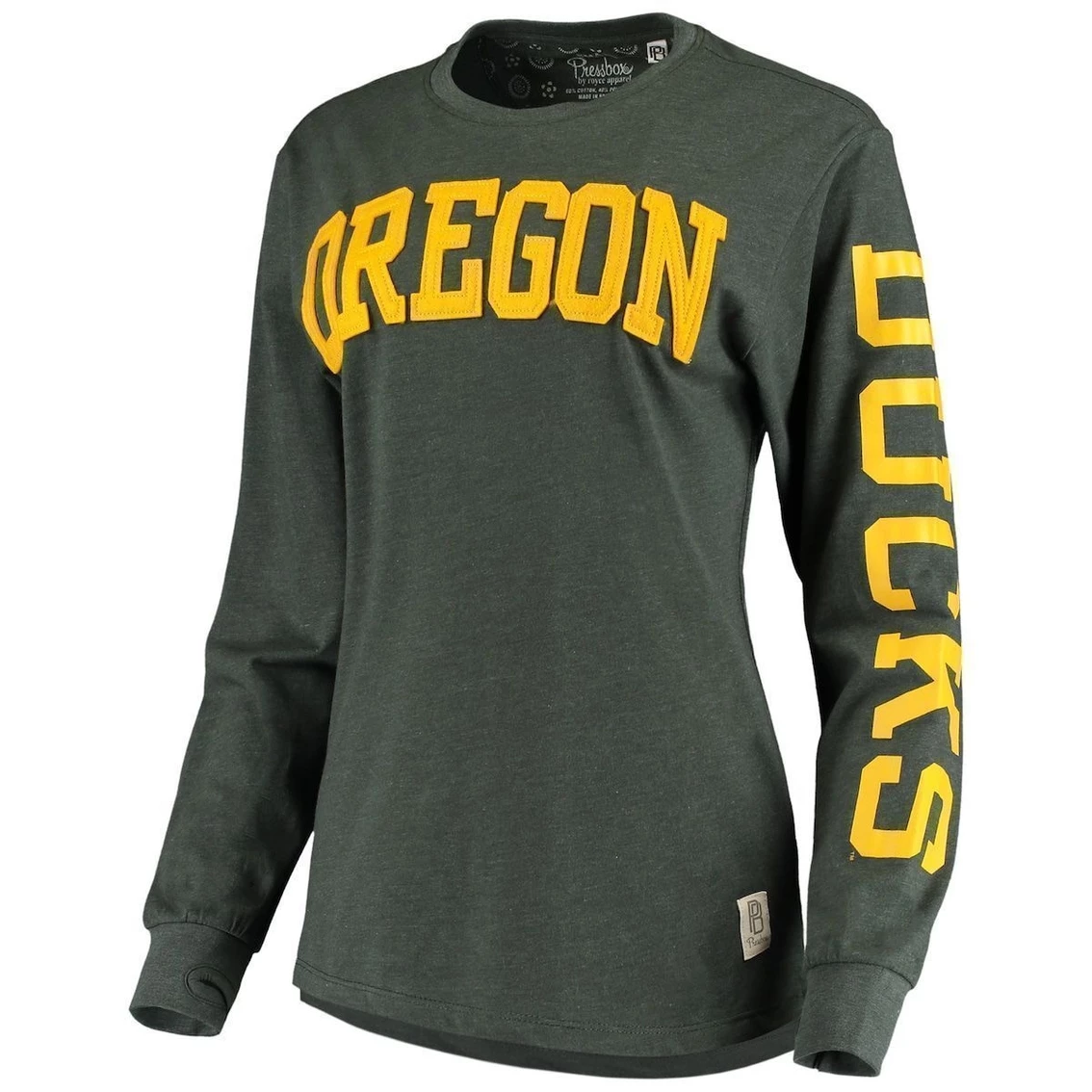Best Pirce π Women's Pressbox Green Oregon Ducks Two-Hit Canyon Long Sleeve T-Shirt π₯°