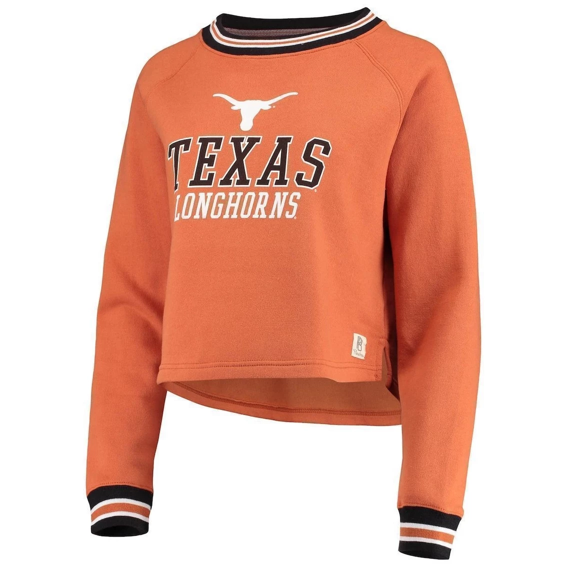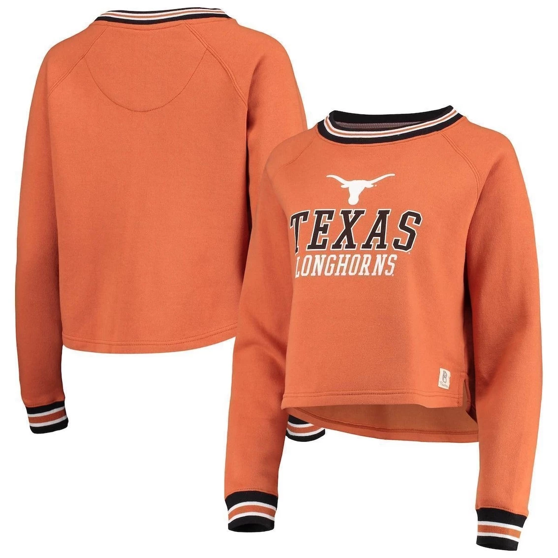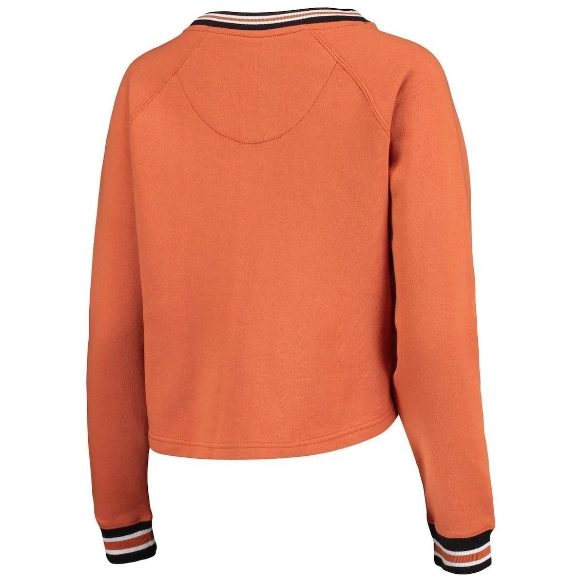 Best Pirce π Women's Pressbox Texas Orange Texas Longhorns Cali Cozy Raglan Crop Pullover Sweatshirt π