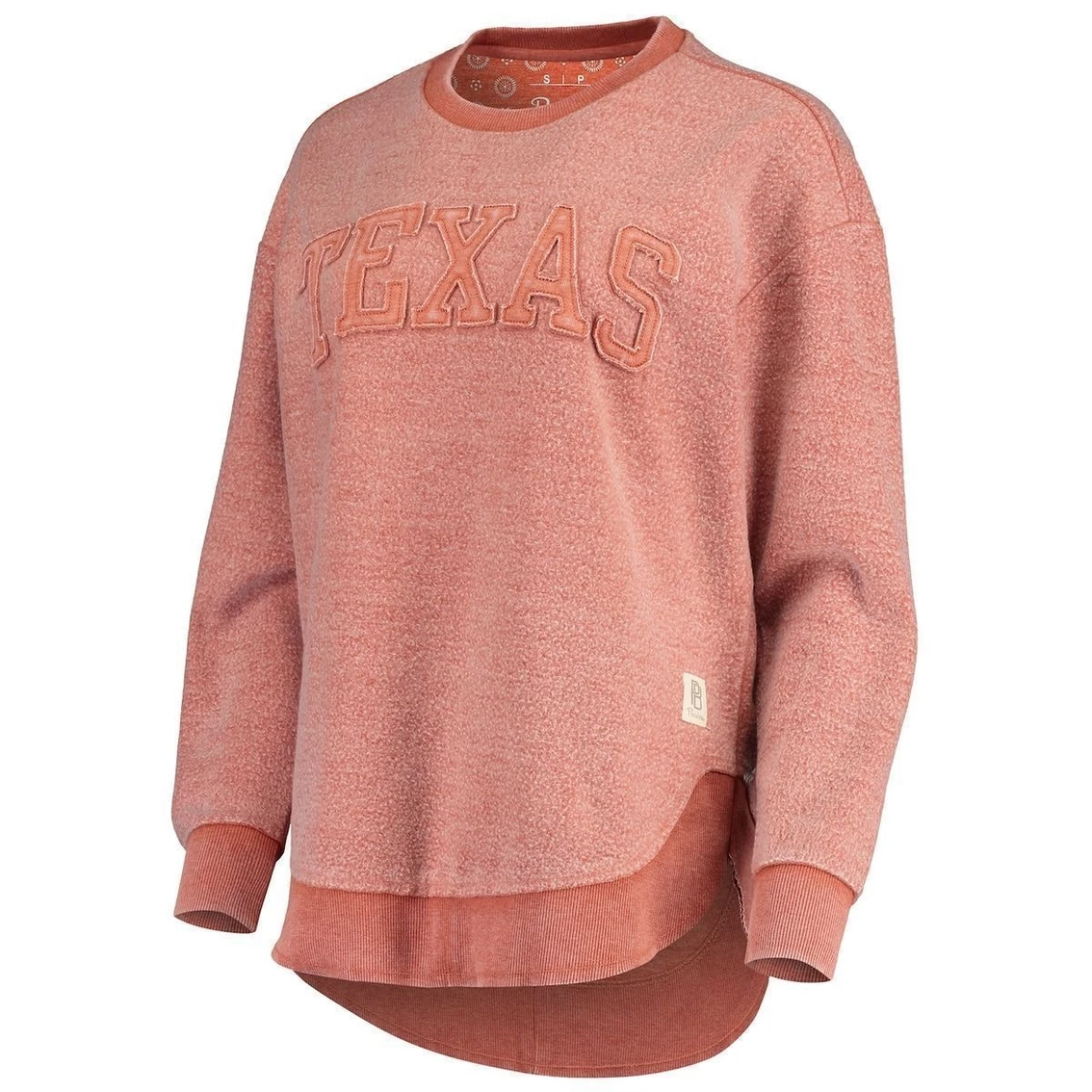 - Rock vintage style on cooler days with this Texas Longhorns Ponchoville sweatshirt from Pressbox. The washed-out fabric and raw edging on the stitched appliques give it an antique look that symbolizes your timeless dedication to the Texas Longhorns. The rounded droptail hem also adds a little extra coverage to this soft pullover for more warmth.