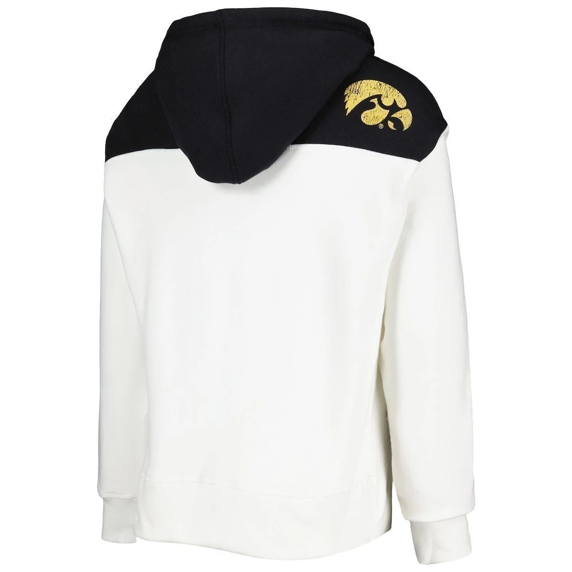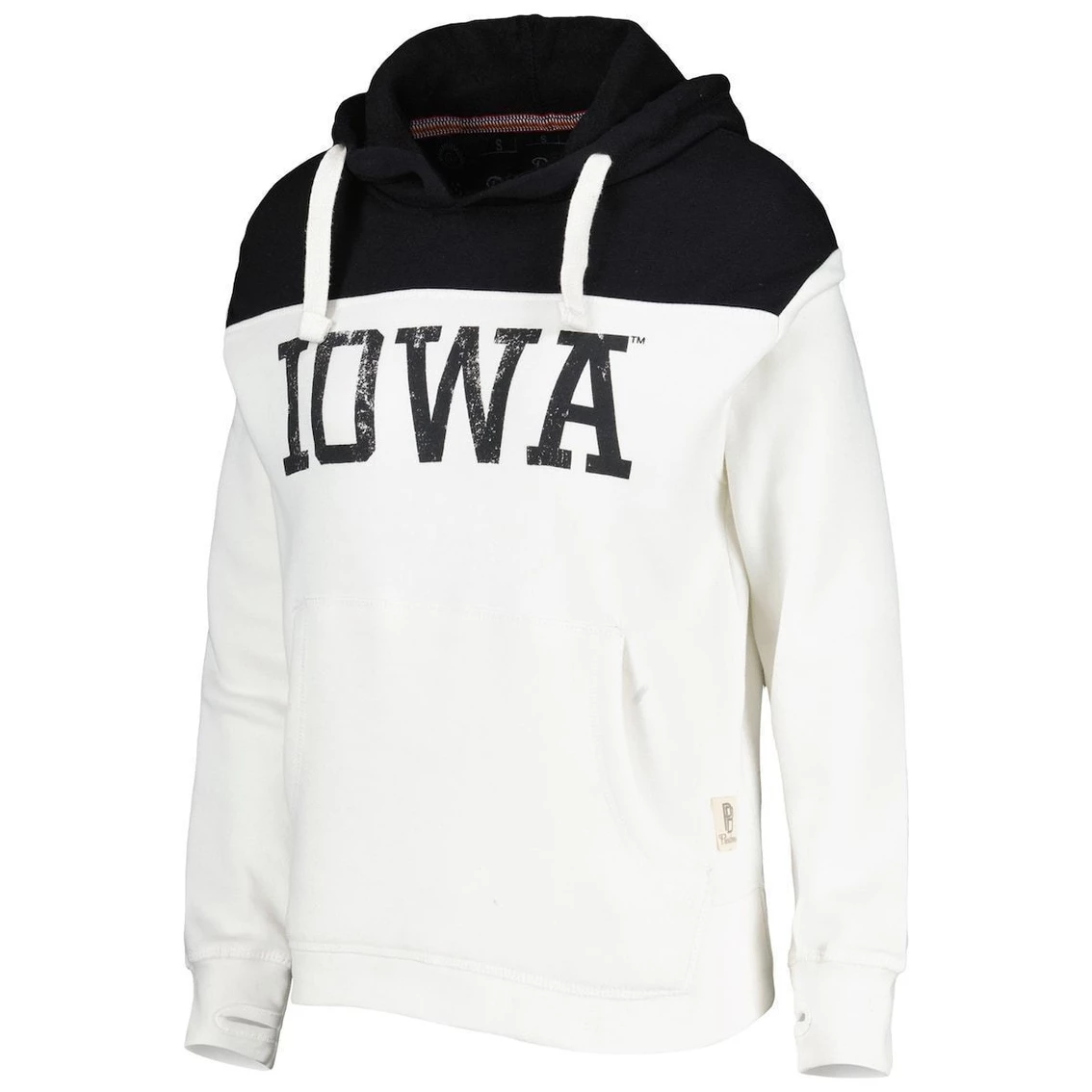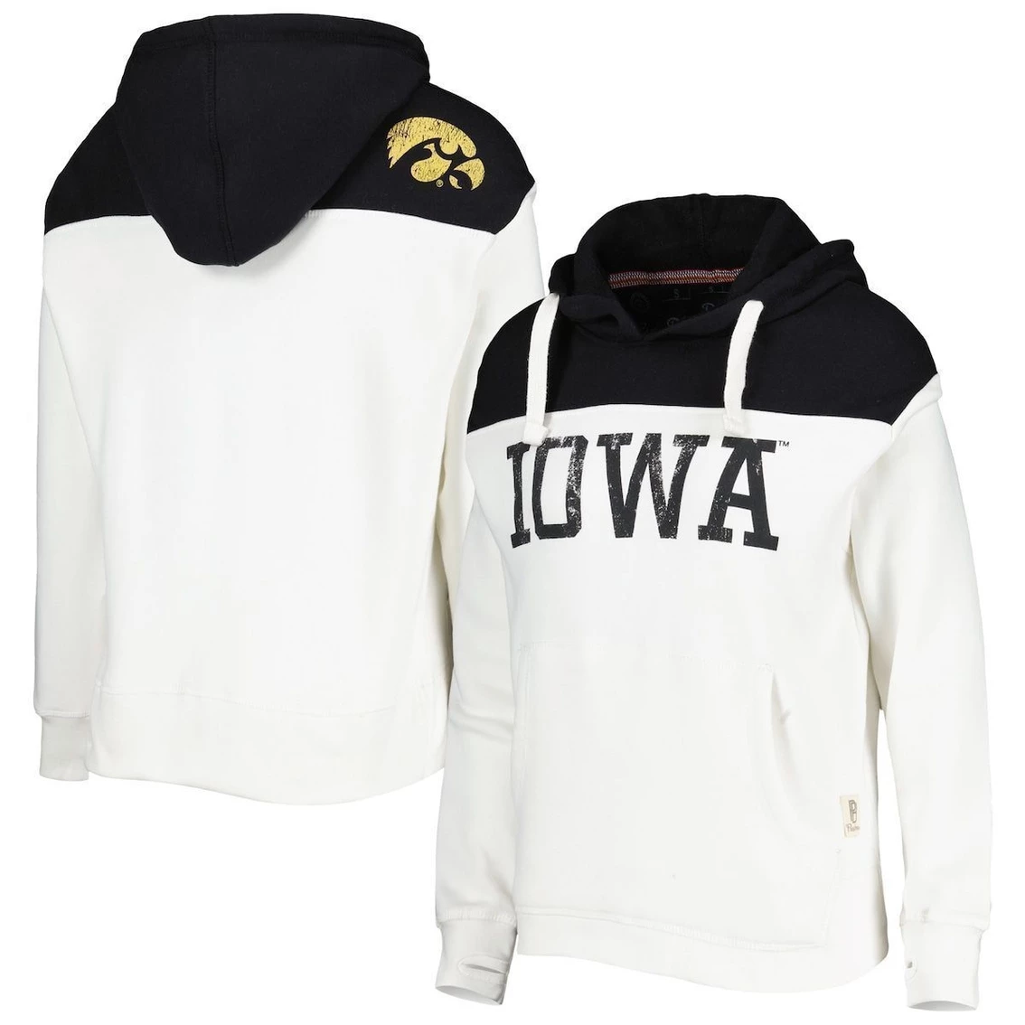 Cheapest π Women's Pressbox White/Black Iowa Hawkeyes Chicago 2-Hit Yoke Pullover Hoodie π