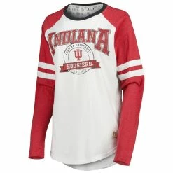 Top 10 π Women's Pressbox White/Crimson Indiana Hoosiers Brooking Sleeve Stripe Raglan Long Sleeve T-Shirt π
