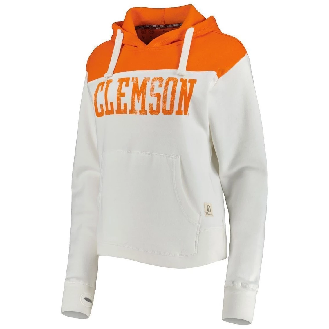 Discount π― Women's Pressbox White/Orange Clemson Tigers Chicago 2-Hit Yoke Pullover Hoodie π