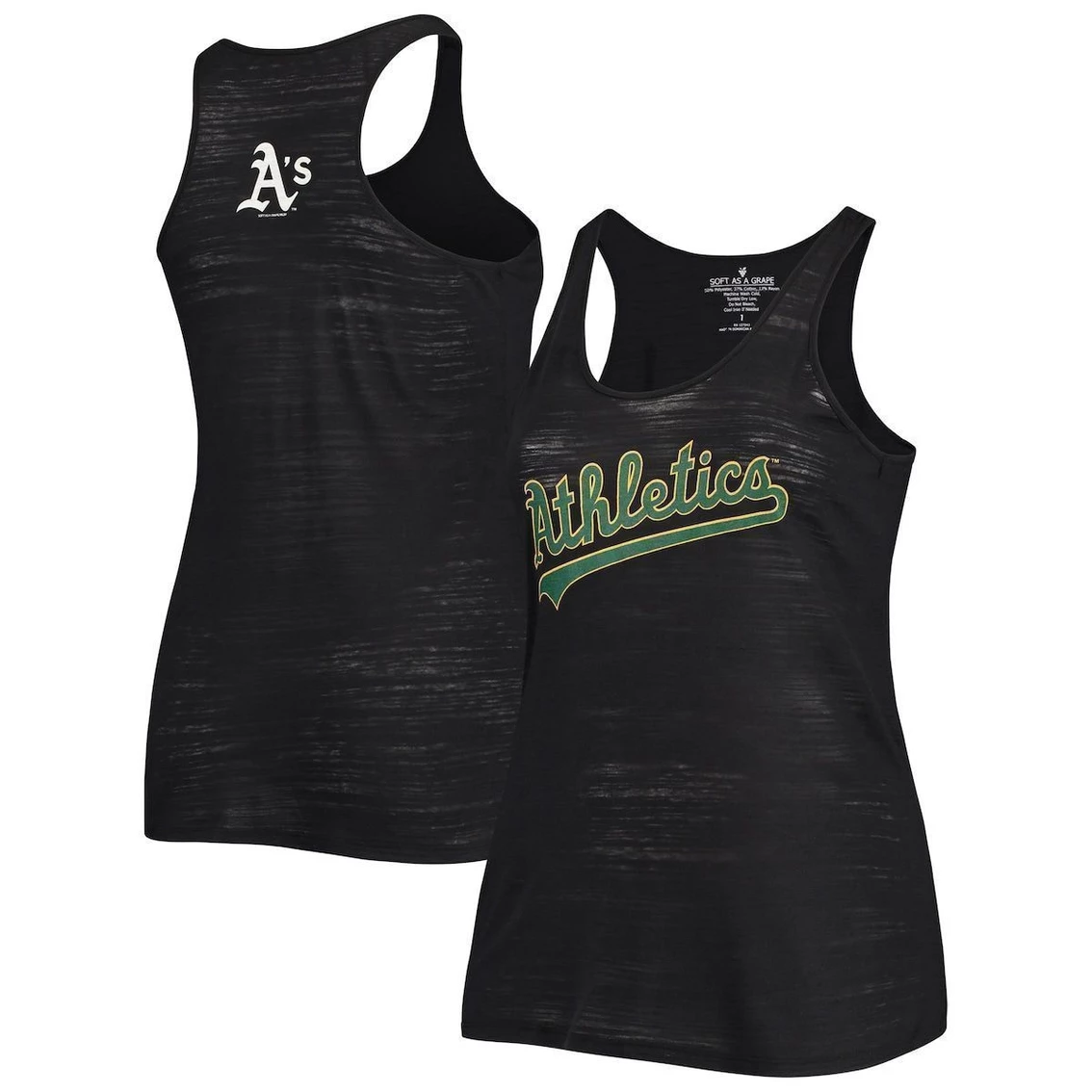 - Upgrade your look at the ballpark this season with this Oakland Athletics Swing for the Fences tri-blend tank top from Soft as a Grape. It’s a step above the basic with a breathable racerback look and a chic burnout style. The Oakland Athletics graphics and comfortable design of this piece are sure to put it at the top of your list of options on game day.