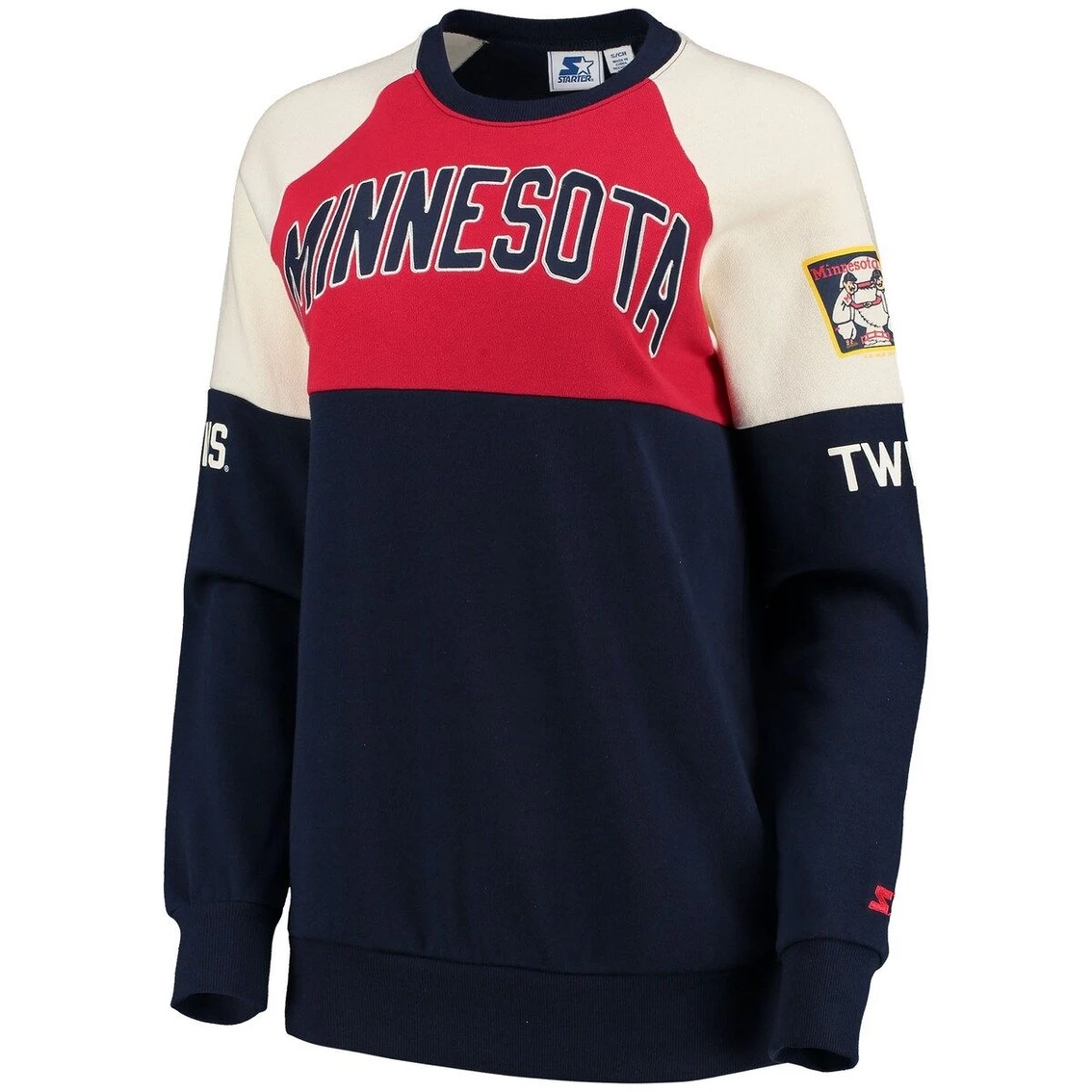 - Your Minnesota Twins loyalty will undoubtedly catch the eye in this bold Baseline Historic Logo pullover sweatshirt from Starter. Its colorful design features printed Minnesota Twins graphics across the front and on both sleeves. The raglan construction of the sleeves will also give you greater flexible movement for a more comfortable fit.