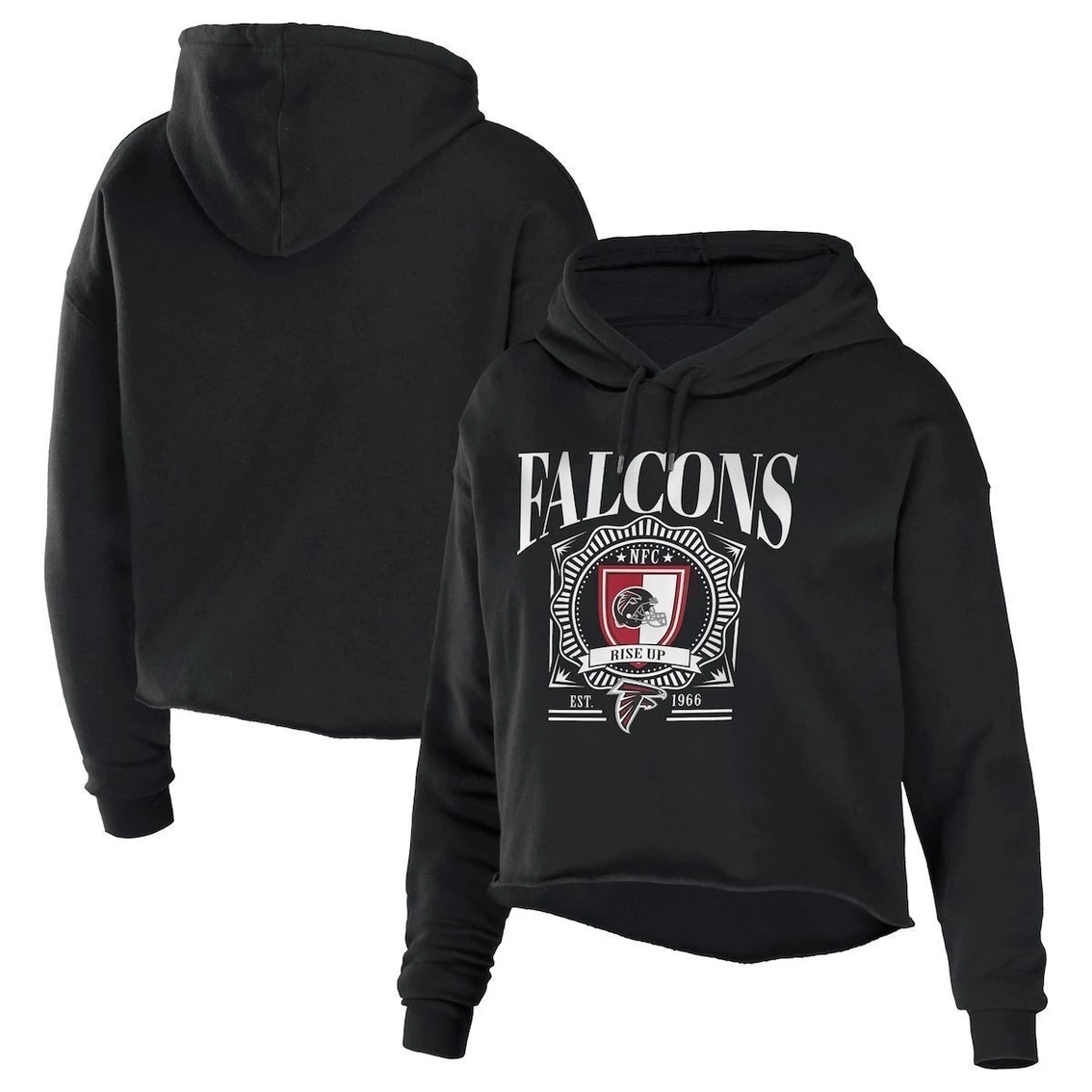 - Add a stylish top to your rotation of Atlanta Falcons apparel with this Sponge pullover hoodie from WEAR by Erin Andrews. It features a cropped hem and iconic team graphics on the front, which work together to emphasize your unwavering fandom in a fun, fashionable way. The fleece lining on the inside is sure to keep you warm and comfortable while you cheer on the Atlanta Falcons.