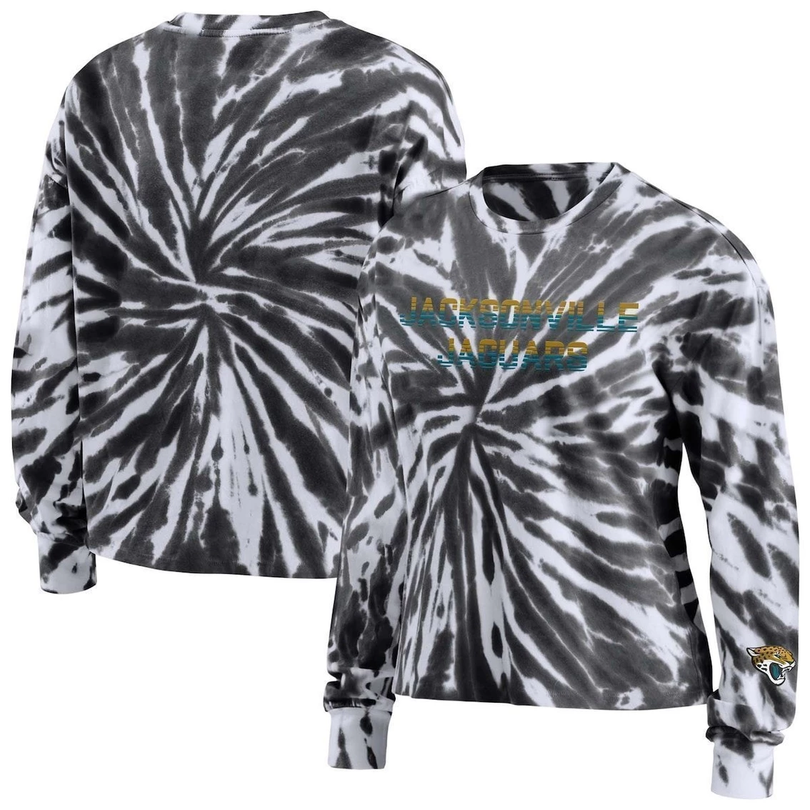 Wholesale π Women's WEAR By Erin Andrews Black Jacksonville Jaguars Tie-Dye Cropped Long Sleeve T-Shirt π
