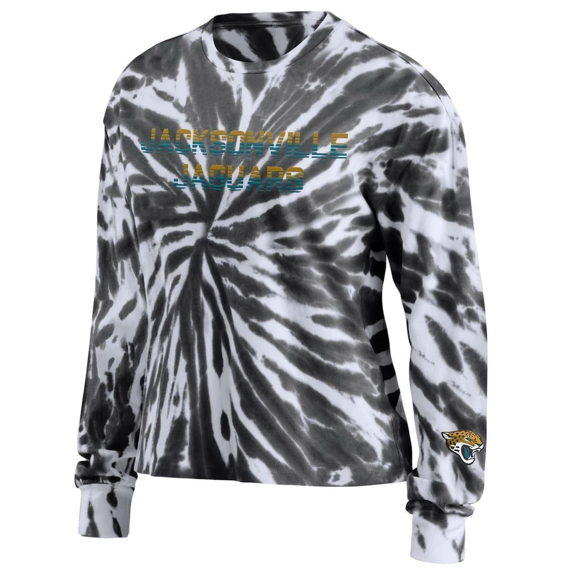 - You’ll love all of the retro-style details of this WEAR by Erin Andrews long sleeve T-shirt. This boxy cropped top is highlighted by the team-colored tie-dyed design. You’ll also find Jacksonville Jaguars details at the chest and left sleeve. Mix and match it with the rest of your Jacksonville Jaguars gear to create a striking look that’s all your own!