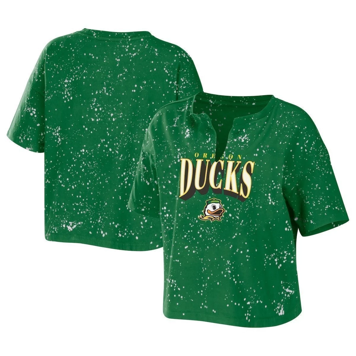 Brand new π― Women's WEAR By Erin Andrews Green Oregon Ducks Bleach Wash Splatter Notch Neck T-Shirt β€οΈ