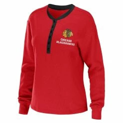 Top 10 π― Women's WEAR By Erin Andrews Red Chicago Blackhawks Waffle Henley Long Sleeve T-Shirt π