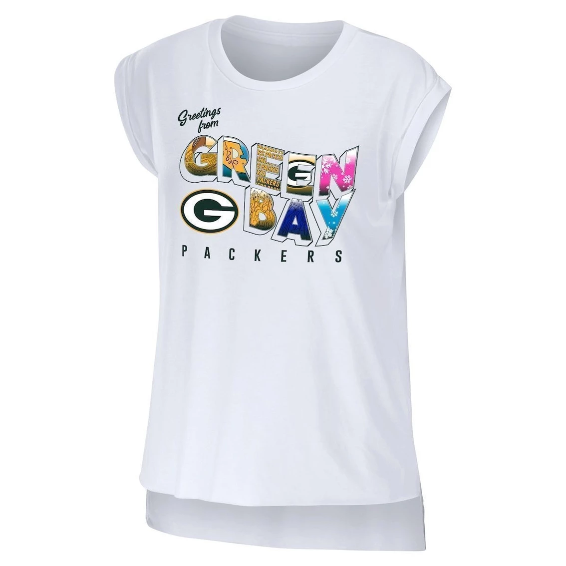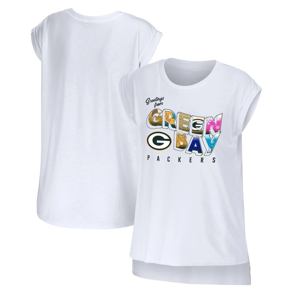 - Add a stylish piece of Green Bay Packers apparel to your rotation with this Greetings From Muscle T-shirt from WEAR by Erin Andrews. It features exciting postcard-like graphics on the front that show your loyalty to the team and their home city. The cotton is sure to keep you warm and comfortable while you cheer on the Green Bay Packers.