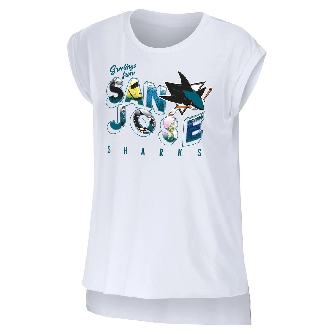 Hot Sale π Women's WEAR By Erin Andrews White San Jose Sharks Greetings From Muscle T-Shirt π